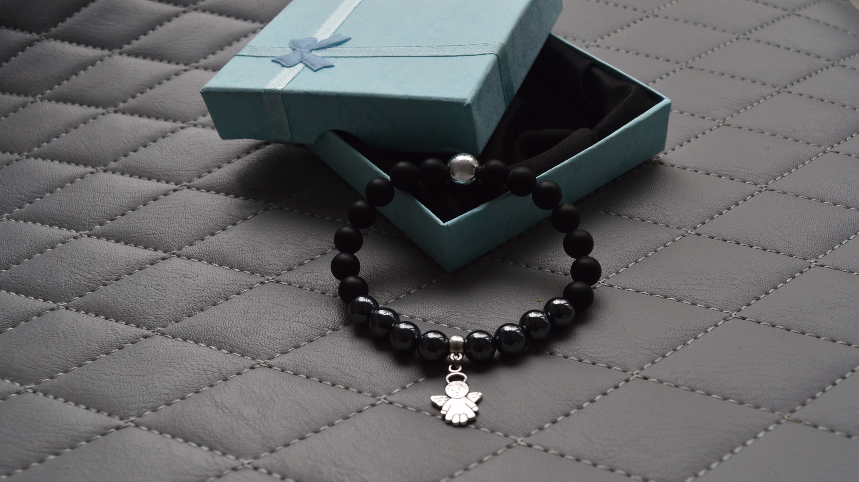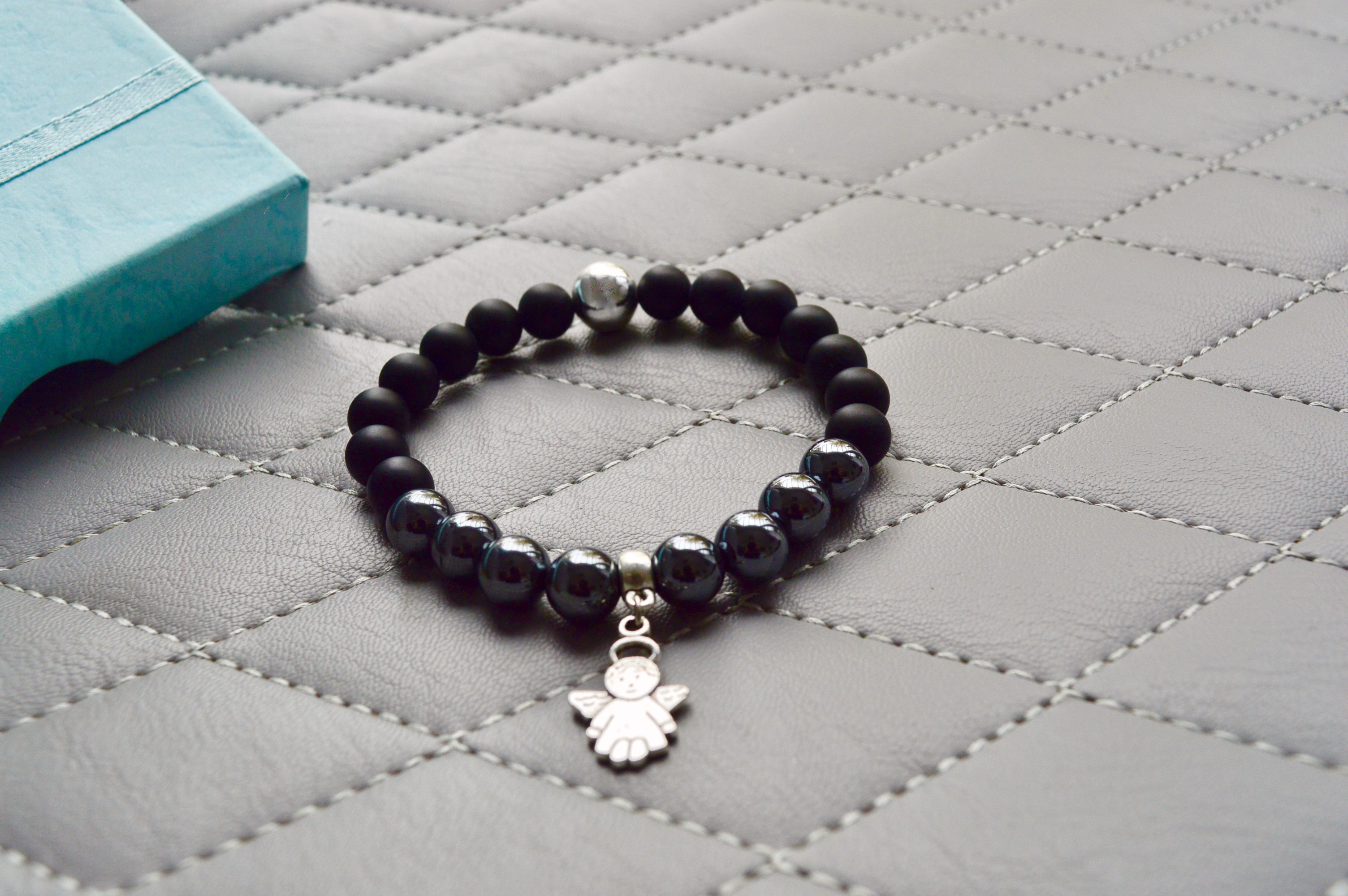 Ónix-hematit angyalkás ásványkarkötő.